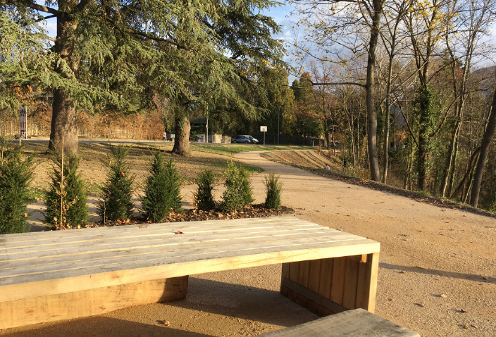 Grâce au projet-modèle, les porteurs de projet ont pu mener une étude de faisabilité concernant le premier itinéraire et en réaliser une première étape concrète, le « Parc des Falaises » dans la commune de Chêne-Bougeries. Désormais, on y trouve une clairière baignée de soleil – avec un emplacement pour pique-niquer et une place de jeux. Un espace de détente et de rencontre a ainsi vu le jour, attirant différents groupes de visiteurs et jouissant de larges vues sur l'Arve et sa rive gauche, en contrebas. Un hôtel à insectes fabriqué par des écoliers, ainsi que des ruches entretenues par des habitants d’une commune voisine, mettent la nature à l’honneur dans cet espace de vie. Le canton et la commune s’occupent ensemble de l’entretien.