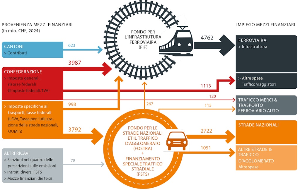 Solo a livello federale, ogni anno vengono spesi circa 10 miliardi di franchi per la costruzione e la manutenzione della rete stradale e ferroviaria. Da dove provengono questi soldi e per cosa vengono utilizzati concretamente?