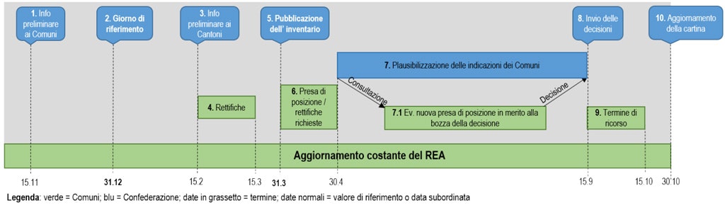 I Comuni sono tenuti a elaborare un inventario delle abitazioni, sulla base del quale viene calcolata la loro quota di abitazioni secondarie. Per adempiere questo requisito di legge, ogni Comune iscrive le abitazioni che si trovano sul suo territorio nel Registro federale degli edifici e delle abitazioni (REA). I Comuni devono riportare almeno il numero totale delle abitazioni e possono iscrivere, su base volontaria, anche le abitazioni equiparate alle abitazioni primarie. L'aggiornamento costante del REA consente ai Comuni di evitare di dover rettificare a posteriori l’inventario delle abitazioni. È indispensabile che i dati del REA e del controllo abitanti siano completi, altrimenti l’UST, non riuscendo a determinare in modo attendibile le abitazioni primarie, deve conteggiarle insieme alle abitazioni secondarie. I dati relativi alle abitazioni primarie non possono essere né registrati manualmente né rettificati a posteriori. I Comuni gestiscono i loro dati nel REA (www.housing-stat.ch). In alcuni Cantoni il REA è gestito dal Cantone stesso. Lo strumento di monitoraggio Delimo fornisce indicazioni sulla qualità dei dati forniti.