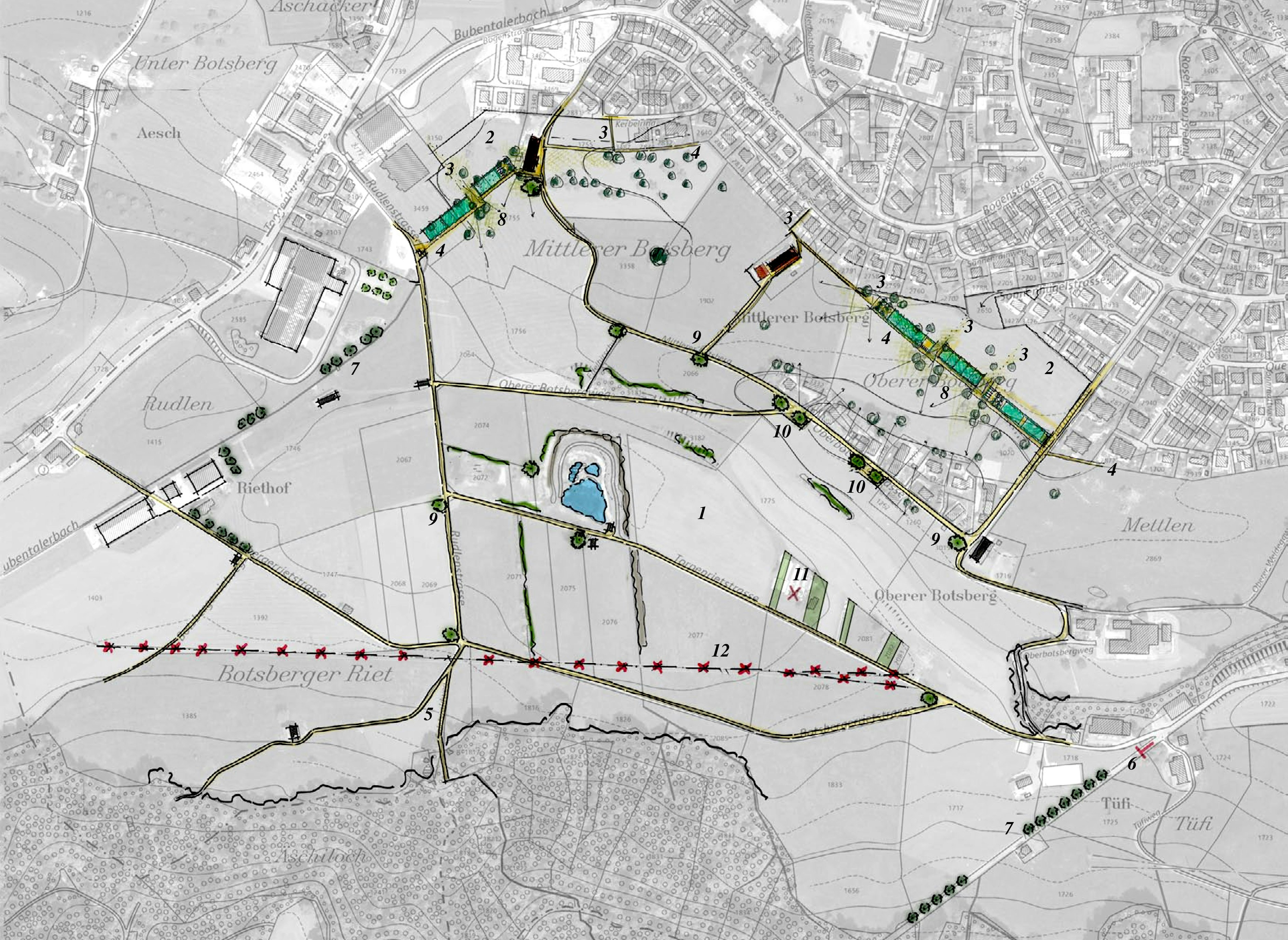 Per far sì che lo spazio non edificato negli agglomerati possa diventare un’area di svago e d’incontro, gli spazi di transizione tra insediamento e paesaggio aperto devono essere al centro di una pianificazione mirata. Il progetto modello «Paesaggio per un’ora» mostra quale potenziale sono in grado di offrire i diversi spazi di transizione e in che modo possono essere sfruttati. Le linee guida del progetto modello servono come aiuto alla pianificazione per chi vuole riproporre quanto fatto in questa regione.